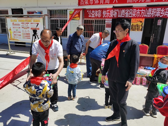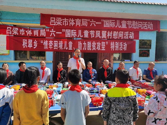 2020年5月31日,在“六一”国际儿童节到来之际,山西省吕梁市体育局和省体育彩票管理中心怀着对山区孩子关爱之情,在吕梁市体育局局党组书记、局长马小军的带领下,市体育局副局长李兆基、市体育馆馆长贾永峻、市体校校长李凯民等局领导班子一行四人和省体育