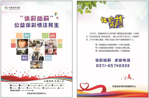 因失去双腿研发“假肢”的程保军、义不容辞奔赴武汉的洛阳伊川神鹰救援队队员康毅勋、照顾瘫痪母亲的林凤英、一人抚养两个患病孩子的单身母亲陈贺贺等都是“体彩助莉”公益项目的帮扶对象。 体彩公益金 浇灌公益之花 2019年,河南体彩共筹集体育彩票公益金40.17亿元(含弃奖),这些体育彩票公益金广泛用于全民健身计划、补充全国社保基金、教育助学、奥运争光计划、青少年体育、农村贫困母亲“两癌”救助、扶贫等社会公益事业。 在体彩公益金的支持下,河南省全民健身基础建设成果显著。已打造出一大批群众体育和竞技体育赛事。例如,焦作太极拳国际交流大赛、郑开国际马拉松赛、万村千乡农民篮球赛、环中原自行车公开赛、豫冠足球联赛、郑州国际少林武术节等。 在体彩公益金的支持下,河南体彩还积极组织开展“公益体彩 快乐操场”、“中国体育彩票新长城助学基金”等资助活动,已为河南省182所乡村中小学送去了价值近300万元的体育器材和设施,资助了160余名优秀贫困大学生。 此外,河南体彩还通过河南广播电视台民生频道的“体彩助莉”活动救助急难群体、开展关爱抗战老兵、捐助地震灾区、支援抗旱救灾、助力扶贫攻坚等各类公益活动,仅2019年就有4.1万余人直接受助和受益。 公益如春雨,润物细无声。体彩公益犹如一股股涓涓细流,源源不断地浇灌长满青苗的土地。未来,中国体育彩票将继续围绕“建设负责任、可信赖、健康持续发展的国家公益彩票”的发展目标,不负时代重托,用实际行动践行国家公益彩票的责任担当。