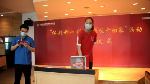 6月18日上午,天津女排队员王宁亮相天津体彩中心,受邀为“体彩刮一刮 特斯拉开回家”活动抽出终极大奖特斯拉汽车,为津门购彩者送出一份幸运,回馈大家为公益事业做出的贡献。 中国体育彩票自发行以来,始终秉承着“来之于民,用之于民”的发行宗旨,弘扬传播大爱,践行公益责任,被称为“公益事业助推器”和“体育事业生命线”。截至2020年5月,天津体彩累计筹集公益金108.96亿元,这些公益金不仅支持了奥运争光计划、全民健身工程,而且在震灾、扶贫、助学、养老、医疗、补充社保基金等方面都作出了巨大的贡献,这些成绩的取得都得益于千千万万购彩者的奉献。