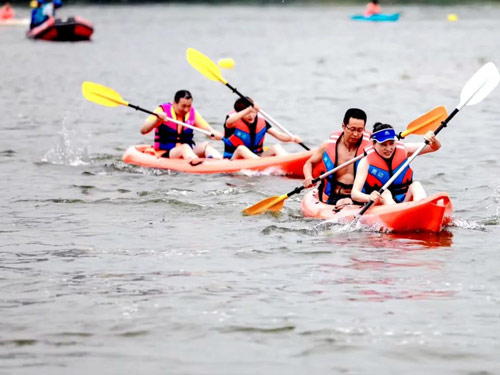 6月21日,2020“中国体彩杯”景德镇市首届端午节水上运动大赛在浮梁县三贤湖水上训练基地举行。近200名水上运动爱好者参加。市体育局副局长孙