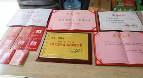 因为多年来积极献血,2011年至2019年连续多年荣获“梅州市无偿献血优秀志愿者”称号。 得知自己为“熊猫血”后,多次参与应急献血 2009年他开始第一次献血,不献不知道,他首次献血被确定为Rh(-)AB型“熊猫血”,这种血型出现的几率是常见人群中的十万分之三。在得知自己是稀有的“熊猫血”后,罗国威随即加入了梅州市稀有血型爱心联盟并登记成为一名应急献血志愿者,至今志愿服务时长超过1000小时。 2012年9月15日,罗国威接到梅州市中心血站的应急电话后,立刻奔赴血站献血300ml给一位患者手术备用;2016年4月16日,市人民医院有一位产妇前置胎盘大出血,急需1200ml的“熊猫血”进行抢救,他当即就献出了400ml的血液,并于当晚组织了三位同型“熊猫血”志愿者到市中心血站参与应急献血;2017年2月4日上午九点,当他再一次接到应急电话,得知有一位患者在手术前严重缺血,急需“熊猫血”来稳定术前身体状况,他当即请假直接赶往献血车,十点前就成功献血400ml,最后患者成功手术并康复出院······