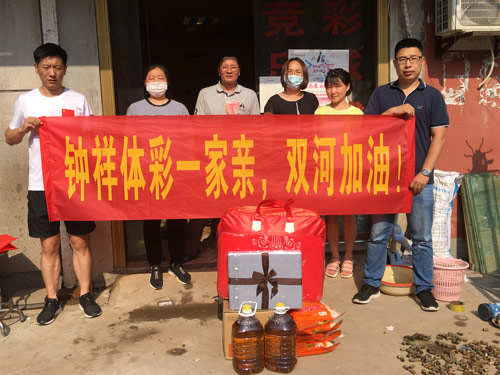 6月27日,湖北荆门钟祥市突降暴雨,全市部分乡镇遭受内涝灾情。其中双河镇20小时降雨量达301毫米,为历史之最,整个镇区积水最深处达到1.8米。 在这次内涝灾害中,地处双河镇的80199体彩实体店代销者家中和店内都被积水浸泡,损失严重。当天晚上,该代销者家中已有很深积水,因店里地势稍高,全家人凌晨4点转移到实体店内。不料,实体店内已被水浸泡超过1米,被迫切断电源,而且水位还在不断上涨,一家人过了担惊受怕的一夜。 实体店代销者冯老板是一位残疾人,原本腿脚不便,这一灾情更是让他雪上加霜。天灾无情人有情,在了解到这一情况后,钟祥区域体彩代销者委员会发起了一场爱心募捐活动。