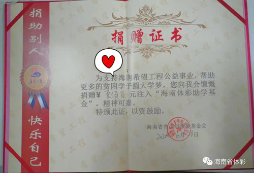海口体彩大乐透中奖者现场慷慨捐款100万给希望工程