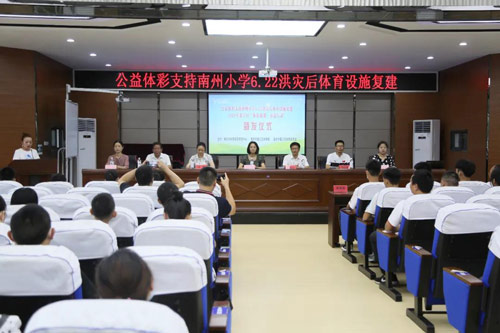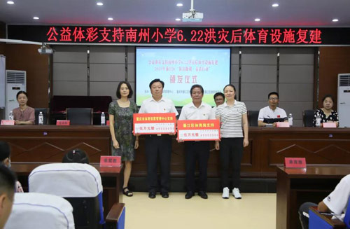今天(30日)上午,“公益体彩支持南州小学6.22洪灾后体育设施复建暨綦江区2020年‘体彩助训·春苗行动’发放仪式”在綦江区南州小学举行。重庆市体彩中心副主任熊鹰,綦江区委教育工委书记、区教委主任王宏兴,綦江区文化旅游委主任、体育局局长胡梅,以及綦江区教委、文旅委、体育局、南州小学等相关领导出席仪式。 守护“体育梦” 体彩捐赠5万元助力灾后重建 6月22日,綦江区綦江河流域遭遇1940年以来最大洪水,沿河地带不同程度受灾。位于彩虹桥东岸附近,地势低洼的南州小学更是在顷刻间被洪水淹没,学校的教学设施以及体育场地、设施设备遭受到了严重的破坏。