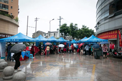 当天上午,党员志愿者们早早来到位于温州市鹿城区珠冠巷口的庆年坊爱心驿站进行张罗。活动现场,党员志愿者热情高涨,即使在滂沱大雨下,也丝毫没有影响一丝服务热情。温州市体彩中心党员志愿者除了为社区送上蓝色体彩简易棚,提升服务环境,还帮忙烧制伏茶、盛绿豆汤等;温州市社体中心党员志愿者将国民体质监测的器材搬至现场,免费给大家进行身体平衡、反应能力及握力等体质检测。活动现场气氛热火朝天,一片热闹景象。