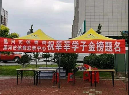 一年一度的高考已拉开序幕,考生们正在接受人生的一次特殊洗礼。7月7日,黑河市各地体彩部门践行公益理念,在高考考点附近搭建“爱心助考站”,为考生们提供矿泉水、帐篷、临时座椅等公益服务,为考生和家长送清凉,以实际行动表达对莘莘学子的关切之情。 黑河体彩衷心祝愿所有心怀梦想的学子们:高考顺利,金榜题名!(杨练)