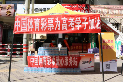 6月22日,克州体彩工作人员来到阿克陶、乌恰等县、乡实体店进行走访慰问,并送上清凉用品,14118实体店代销者表示:“在这炎热的夏季,体彩中心能想到我们销售员,很感动,对我们也是一份激励。”。与此同时,还在州体育馆集中为市环卫局的环卫工人们送上夏日的一抹清凉。 为考生加油,为陪考家长鼓劲。克州体彩分部组织公益爱心代销者在考点支起了“公益金展示”凉棚,摆放清凉饮料、防暑用品和公益金使用展示卡片,在火热的高考季为考生提供降温防暑用品,为家长提供更加舒适清凉的陪考环境。