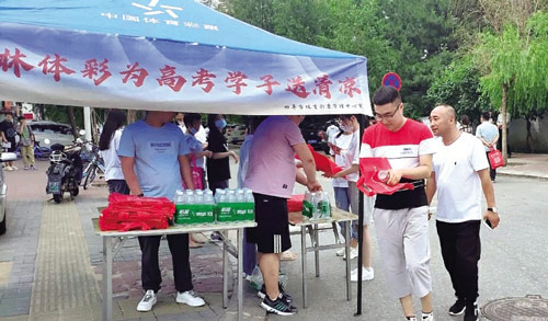 受新冠肺炎疫情影响,今年的高考比往年推迟了一个月,于7月7日至10日期间在全国各地进行。这个时间也是一些地区降雨集中的时间段,为了让考生准时参加考试、让家长有个休息的地方,山东、江苏、吉林等地体彩中心在考场周边设立服务点,提供考试文具、防暑降