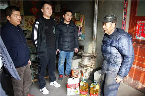 2018年2月9日,淄博高青县体彩志愿者一行五人来到贫困老人家中,给他们送去油、米新年慰问品,帮助他们度过一个温暖、祥和的好年。高青县体彩互助组组长胡长安说:“我们互助组成立以来,一直想组织一些力所能及的志愿服务活动。临近年关,代销者们都提议去看看那些生活困难的独居老人,全区所有实体店齐心协力一共捐了2000元钱,买了些油和大米,给10家贫困独居老人送去。”