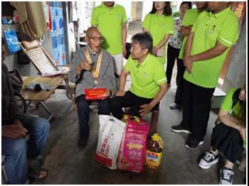7月22日上午,河南省体育彩票管理中心第四党支部洛阳党小组全体党员、积极分子和体彩代销者党员代表,在河南省体育彩票管理中心洛阳分中心主任屈宏海带领下,一同到伊川县高山乡坡头村,看望抗战老兵金鑑老人,为他送去慰问和祝福。虽然连续多日阴雨绵绵,但大家的热情丝毫不减,一起聆听抗战故事,共忆峥嵘岁月,向老兵致以崇高的敬意。 金鑑老人紧紧握着体彩志愿者的手,不断地表示感谢。屈宏海主任详细询问老人的生活、身体状况以及家人情况,并给老人送上2000元慰问金,以及大米、面粉、食用油等生活必需品。